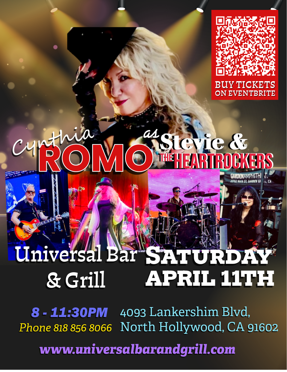 Meet Stevie & The HeartRockers Tribute Band. Come and enjoy the music of Stevie Nicks and Tom Petty. Starring Cynthia Romo and the HeartRockers Band.